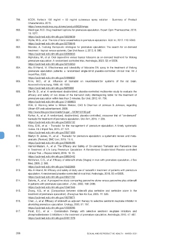 801. Wyllie, M.G., et al. The role of local anaesthetics in premature ejaculation. BJU Int, 2012. 110: E943.