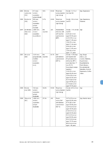2008 Chew et al. 1,580 men; 37.3% >20 Postal 15.7% ED in men Age, Marital status
